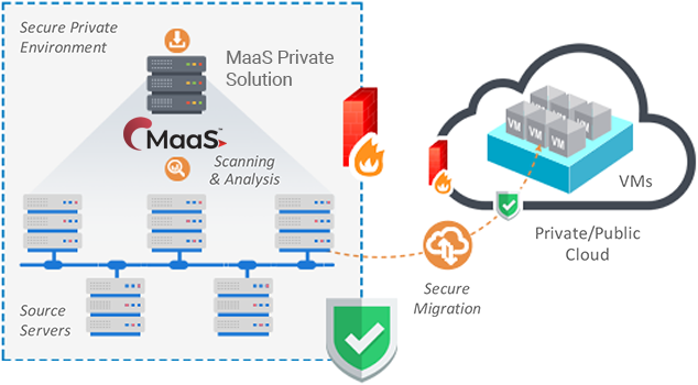 MaaS Private Solution is a fully functional Cloud analysis and migration platform specifically designed for migrating application/infrastructure servers from private environments. It offers all the features provided by the complete version of MaaS.